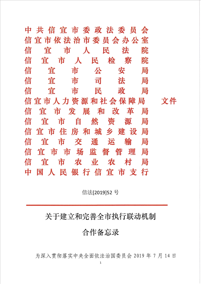 【营商环境】中共Ycc365下载_365bet下注_365bet中文官网委政法委员会 Ycc365下载_365bet下注_365bet中文官网依法治市委员会办公室 Ycc365下载_365bet下注_365bet中文官网人民法院 Ycc365下载_365bet下注_365bet中文官网人民检察院 Ycc365下载_365bet下注_365bet中文官网公安局 Ycc365下载_365bet下注_365bet中文官网司法局 Ycc365下载_365bet下注_365bet中文官网民政局 Ycc365下载_365bet下注_365bet中文官网人力资源和社会保障局 Ycc365下载_365bet下注_365bet中文官网发展和改革局 Ycc365下载_365bet下注_365bet中文官网自然资源局 Ycc365下载_365bet下注_365bet中文官网住房和城乡建设局 Ycc365下载_365bet下注_365bet中文官网交通运输局 Ycc365下载_365bet下注_365bet中文官网市场监督管理局 Ycc365下载_365bet下注_365bet中文官网农业农村局 中国人民银行Ycc365下载_365bet下注_365bet中文官网支行 《关于建立和完善全市执行联动机制合作备忘录》